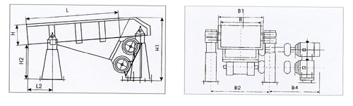 該系列放礦機的放礦過程是利用兩臺電動機帶動激振器驅動放礦槽沿傾斜方向做周期直線往復振動來實現(xiàn),當放礦槽振動的加速度垂直大于重力加速度時,槽中的物料被拋起,并按照拋物線的軌跡向前跳躍運動,拋起和下落在瞬間完成,由于激振器的連續(xù)激振,給放礦槽連續(xù)振動,槽中的物料連續(xù)向前跳躍,以達到放礦的目的。