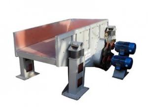 該機(jī)采用雙偏心軸激振器的結(jié)構(gòu)特點(diǎn),保證設(shè)備能承受大塊物料下落的沖擊, 給料能力大。在生產(chǎn)流程中可以把塊狀、顆粒狀物料從貯料倉中均勻、定時(shí)、連續(xù)地給到受料裝置中去,從而防止受料裝置因進(jìn)料不均而產(chǎn)生死機(jī)的現(xiàn)象,延長了設(shè)備使用壽命。給料機(jī)可分為鋼板結(jié)構(gòu)和篦條結(jié)構(gòu),鋼板結(jié)構(gòu)的給料機(jī)多用于砂石生產(chǎn)線,將物料全部均勻地送入破碎設(shè)備;篦條結(jié)構(gòu)的給料機(jī)可對(duì)物料進(jìn)行粗篩分使系統(tǒng)在配制上更經(jīng)濟(jì)合理,在破碎篩分中已作為必不可少的設(shè)備。